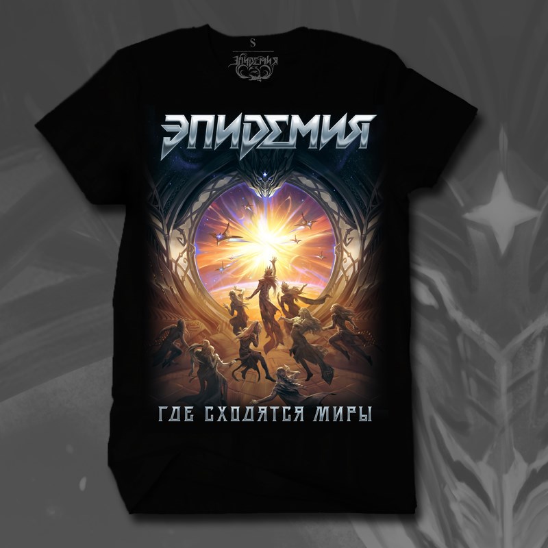 Дизайн с рисунком альбома "Где Сходятся Миры". На спине список городов первой части тура.